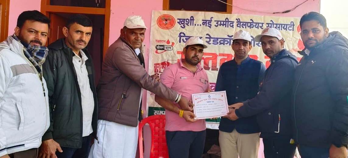 खुशी नई उम्मीद संस्था द्वारा किरढान गौशाला में रक्तदान एवं स्वास्थ्य जांच शिविर आयोजित